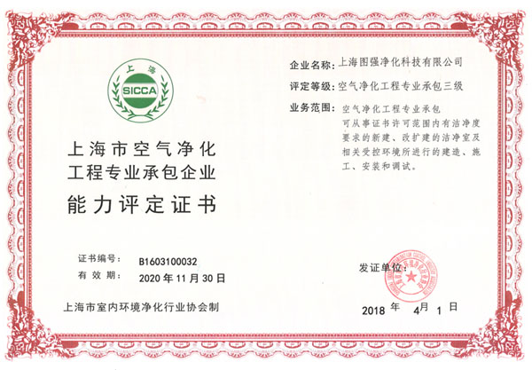 上海圖強(qiáng)凈化科技有限公司,成立于二零零八年六月,注冊(cè)資金兩千萬(wàn),是一家從事空氣凈化工程設(shè)計(jì)施工,承接全國(guó)各地凈化工程的專業(yè)技術(shù)公司。公司總部位于上海市松江區(qū)葉榭鎮(zhèn),辦公占地400多平方米,分公司地址位于上海普陀區(qū)桃浦鎮(zhèn)金迎路55號(hào)4樓407室。上海圖強(qiáng)凈化科技有限公司具有建筑裝飾工程專業(yè)承包二級(jí)資質(zhì)、空氣凈化工程專業(yè)承包三級(jí)資質(zhì)、安全生產(chǎn)許可證、CCTV央視廣告播出證明、上海市室內(nèi)環(huán)境凈化行業(yè)協(xié)會(huì)專業(yè)證書。